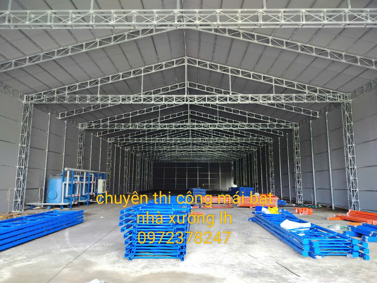 Nhà xưởng – khu sản xuất: Mái che quy mô lớn, chắc chắn, đáp ứng tiêu chuẩn an toàn.