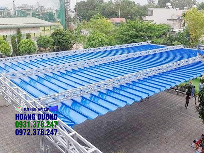 - Dễ thi công và di chuyển. Vì thế, nếu bạn dự định mở quán ăn, nhà hàng mà phải tự đầu tư xây dựng thì nên lựa chọn mái che này. Bởi giá lắp đặt mái xếp rẻ, thời gian thi công nhanh chóng mà còn dễ di chuyển và không bị thất thoát như khi xây nhà bằng bê tông.